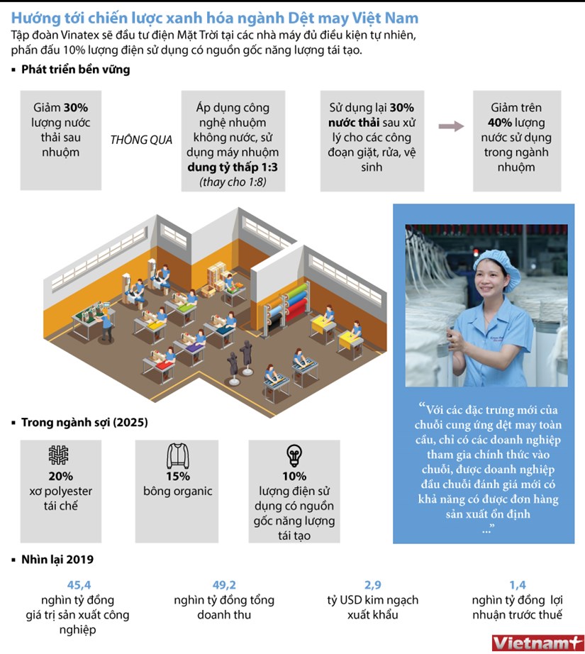 Thông tin với báo chí ngày 3/1, ông Cao Hữu Hiếu, Giám đốc điều hành Tập đoàn Dệt may Việt Nam (Vinatex) cho biết, tập đoàn đang hướng tới chiến lược xanh hóa ngành dệt may trong nước.