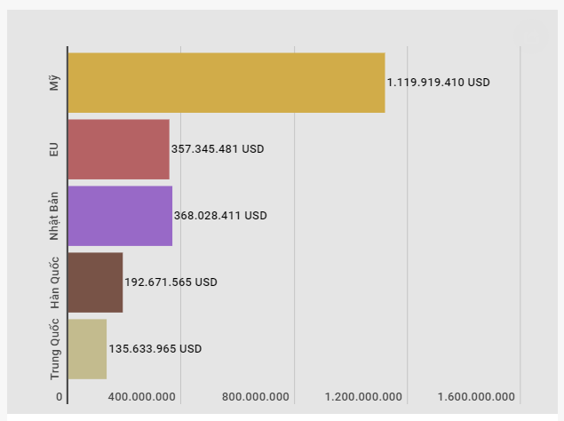– Một số thị trường tiêu thụ hàng dệt may Việt Nam lớn nhất trong 11 tháng năm 2019: