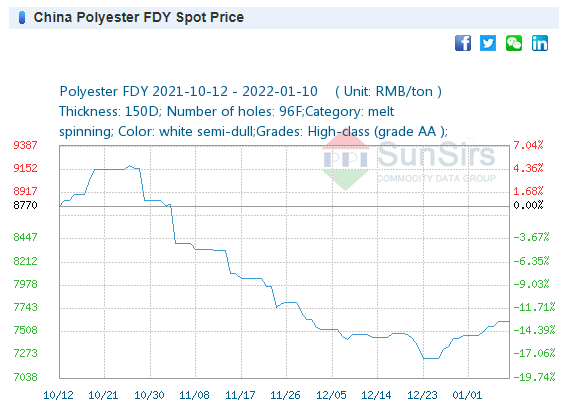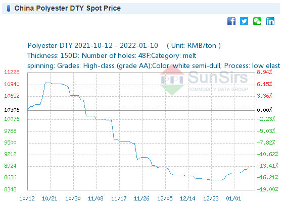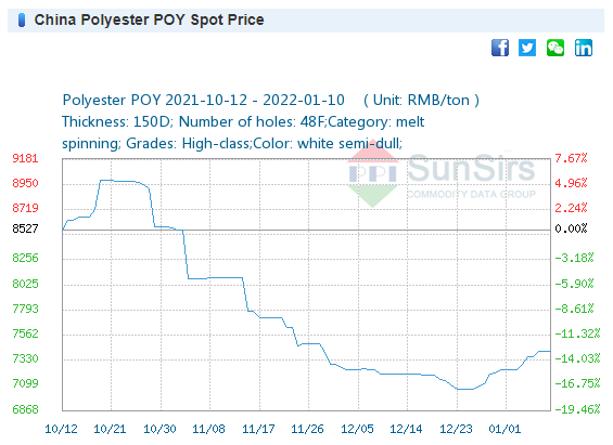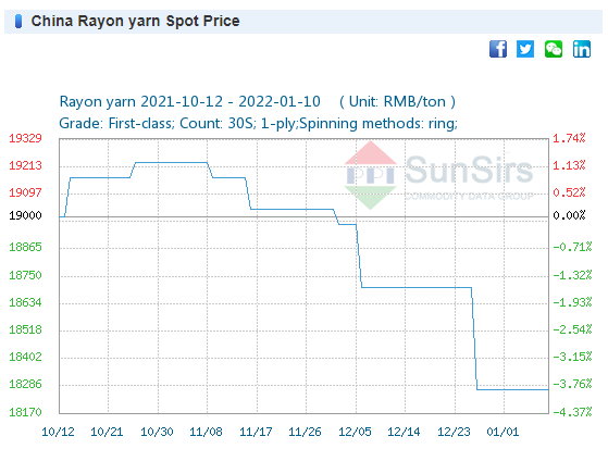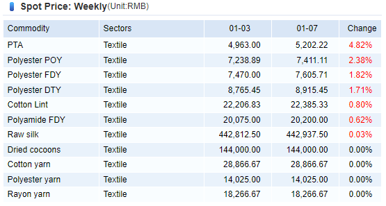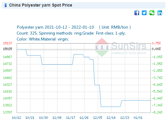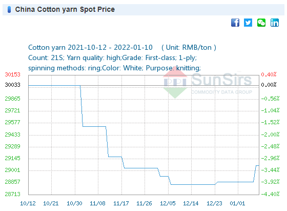 Price: On January 5, the price of 32S cotton yarn was 30,166 yuan/ton, the same as last week.