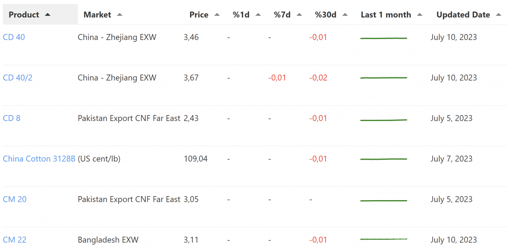 - The unit price of yarn referred from Chinese market and other countries which is different from the unit price of yarn produced in Vietnam, so please refer to the weekly price data and historical price fluctuations for the range of market price fluctuations per period.