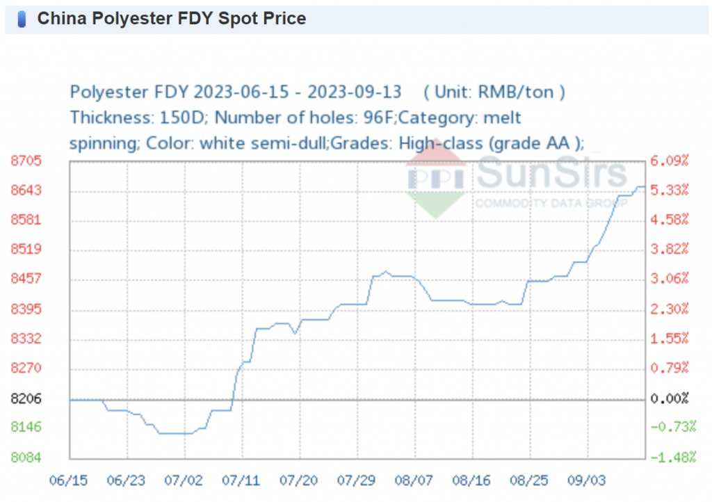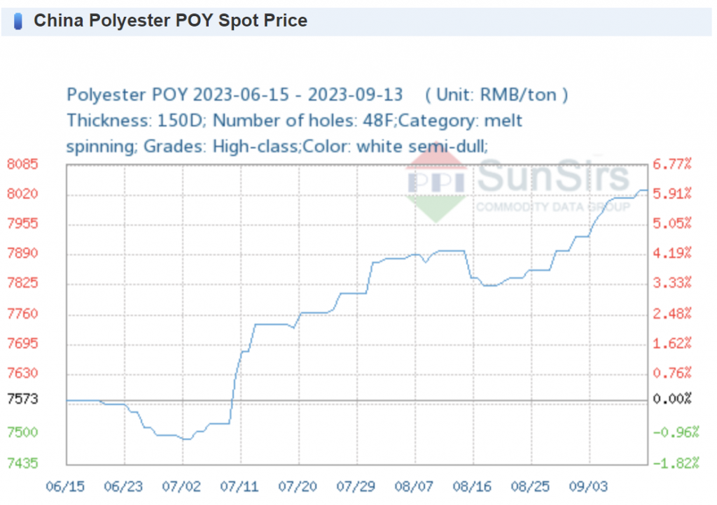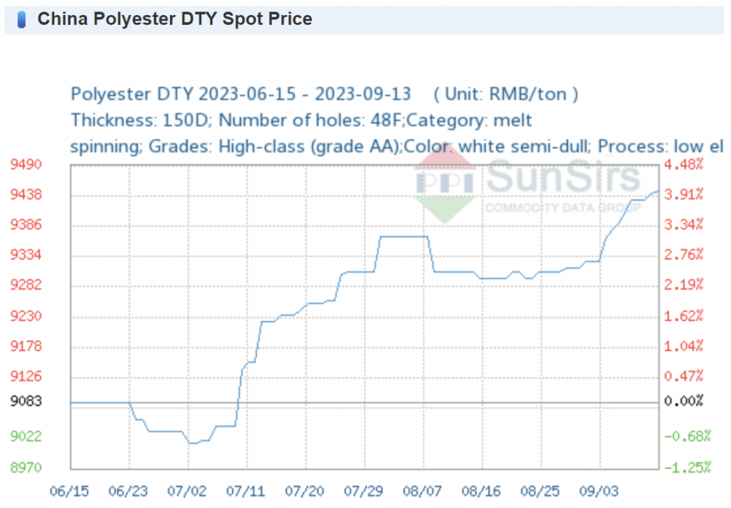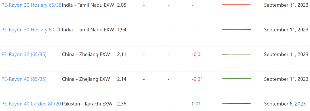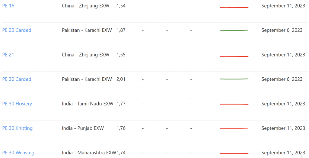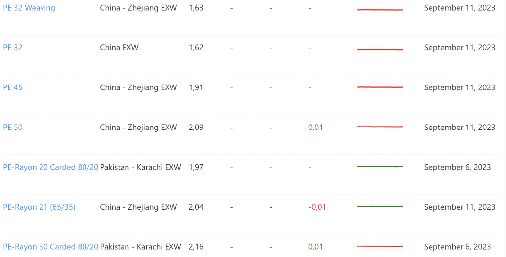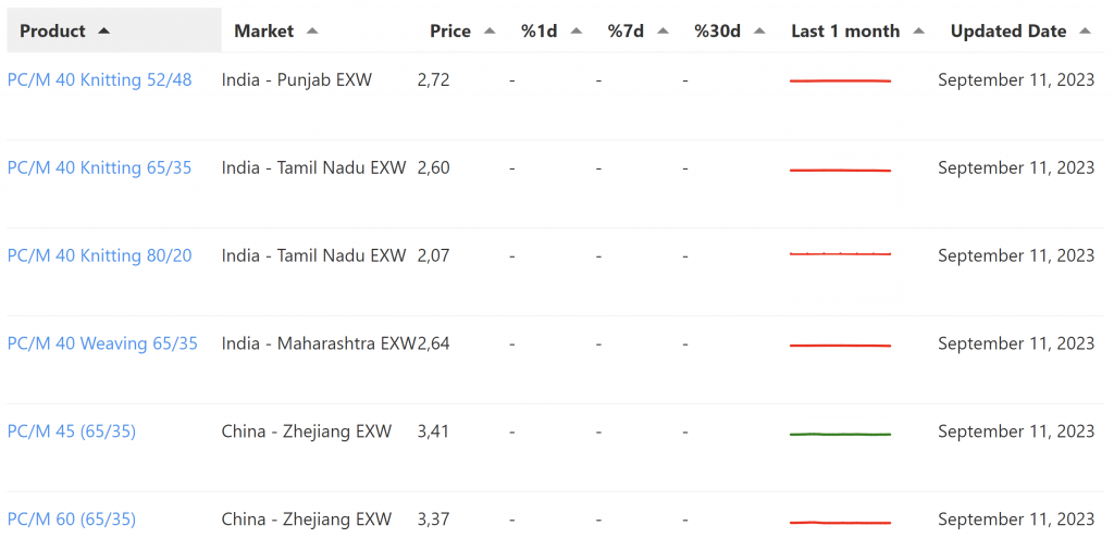? Giá sợi Bangladesh tăng do đơn đặt hàng quần áo may sẵn cho mùa xuân tăng. Sợi chải thô chi số 30 được bán từ 3,50 USD đến 3,60 USD mỗi kg trong khi một tháng trước là 2,90 USD đến 3,10 USD. Sợi chải kỹ chi số 30, đang được bán từ 4 đến 4,05 USD/kg trong khi một tháng trước là 3,50 USD đến 3,60 USD.