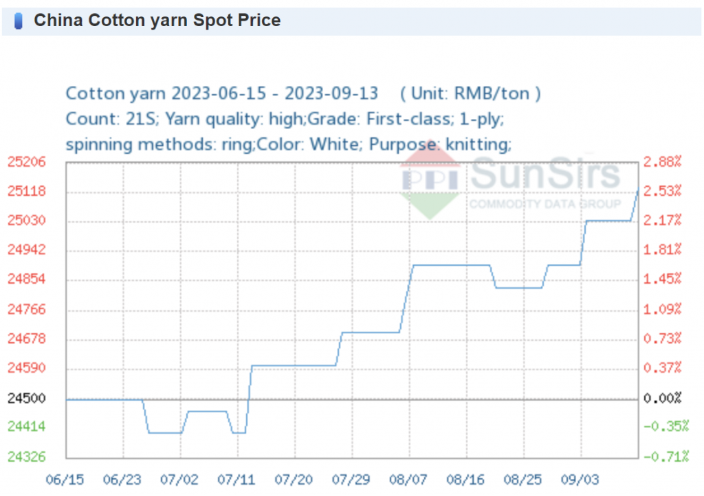 - The unit price of yarn referred from Chinese market and other countries which is different from the unit price of yarn produced in Vietnam, so please refer to the weekly price data and historical price fluctuations for the range of market price fluctuations per period.