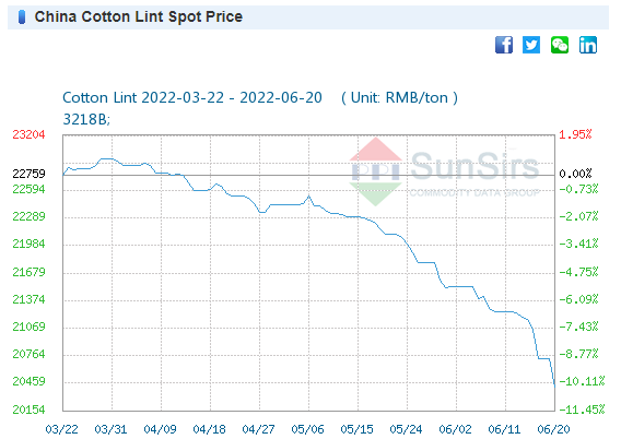 Giá bông cũng giảm đáng kể. Giá bông giao ngay Shankar-6 đã giảm xuống còn 91.000 Rupee (tương đương) so với gần 100.000 Rupee/candy vào tháng trước.