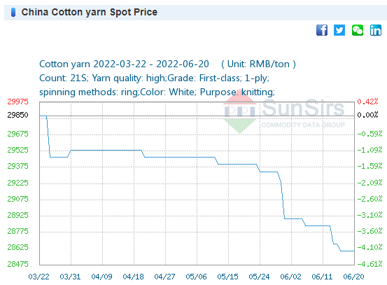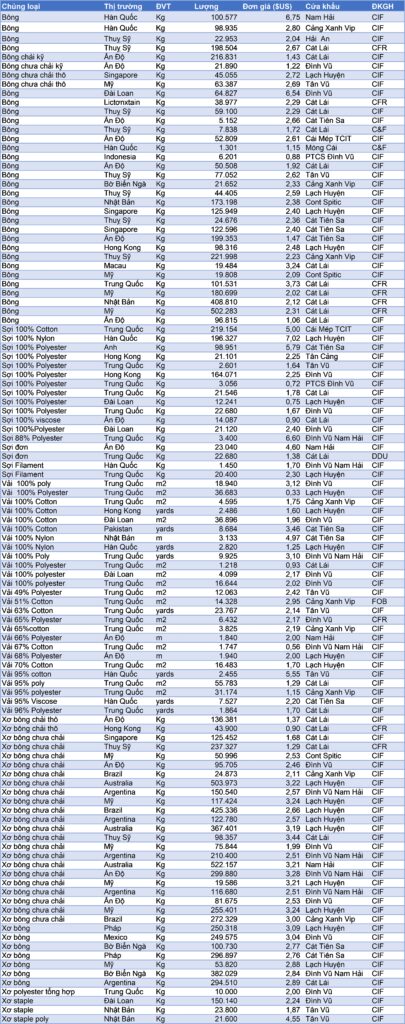 - The unit price of yarn referred from Chinese market and other countries which is different from the unit price of yarn produced in Vietnam, so please refer to the weekly price data and historical price fluctuations for the range of market price fluctuations per period.