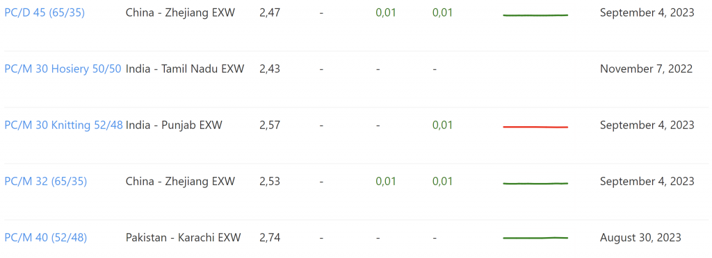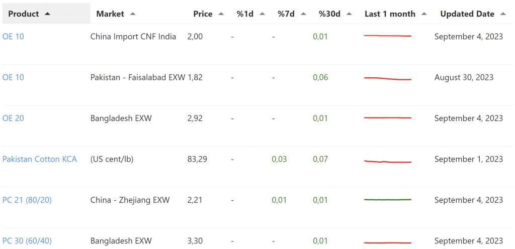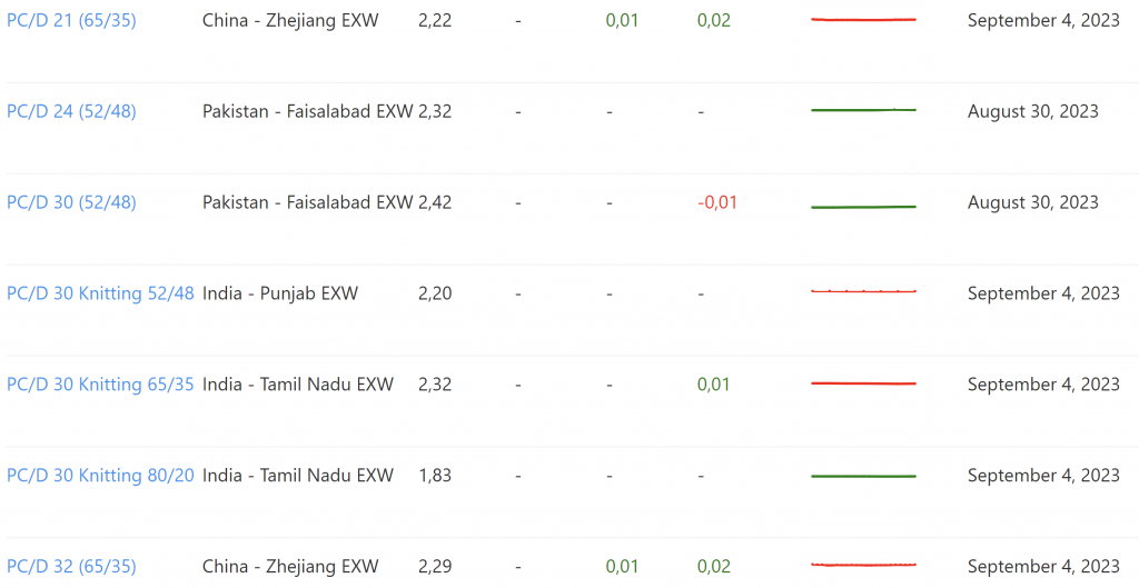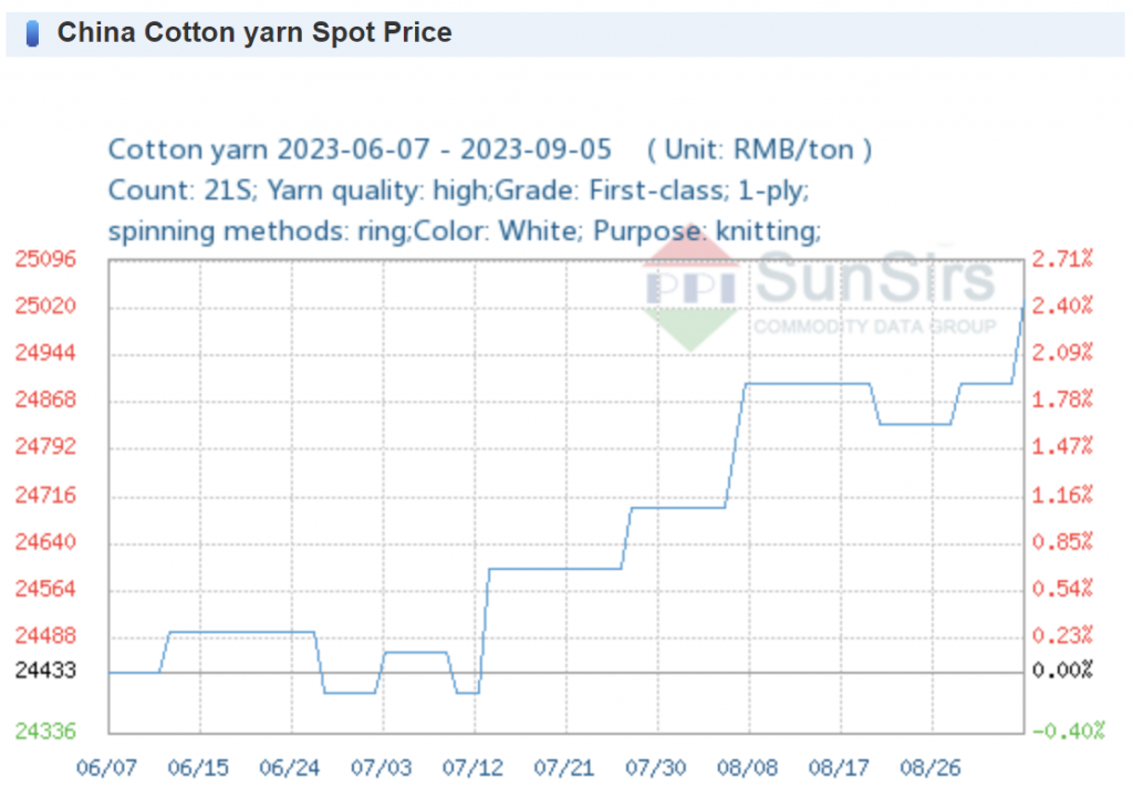 - The unit price of yarn referred from Chinese market and other countries which is different from the unit price of yarn produced in Vietnam, so please refer to the weekly price data and historical price fluctuations for the range of market price fluctuations per period.