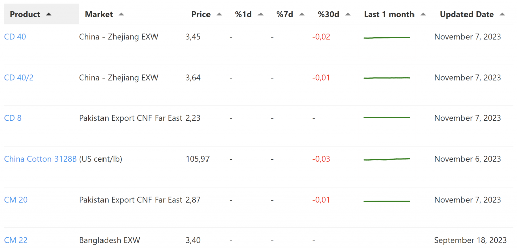 - The unit price of yarn referred from Chinese market and other countries which is different from the unit price of yarn produced in Vietnam, so please refer to the weekly price data and historical price fluctuations for the range of market price fluctuations per period.