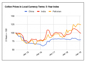 Chỉ số bông thực sự vẫn ở mức cao trong những tháng cuối cùng ở Pakistan trong khi Shankar 6 của Ấn Độ liên tục giảm.