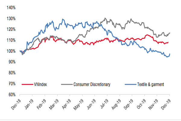 Trong năm 2019, xuất khẩu của Việt Nam sang các thị trường khác chỉ đạt mức tăng trưởng một con số, trong đó thị trường tăng trưởng cao nhất là Mỹ, đạt 8,9% YoY. Theo Vinatex, nhu cầu thế giới bị ảnh hưởng bởi chiến tranh thương mại. Các công ty sản xuất trong nước cho biết sản lượng mỗi đơn hàng giảm, khách hàng không còn đặt hàng trước 3-6 tháng như trước, và giá cả trở nên cạnh tranh hơn. SSI dự đoán xu hướng này còn tiếp tục diễn ra ít nhất đến quý 2/2020.