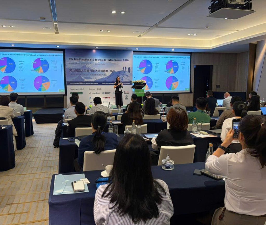 Ngày 24/3/2026, bà Nguyễn Thúy Vi, Phó Tổng Thư ký & Trưởng ban Xúc tiến Thương mại Hiệp hội Bông Sợi Việt Nam (VCOSA) – đã tham gia Triển lãm và Hội nghị Quốc tế về Nguyên liệu Dệt may (FUTEX 2026) với vai trò diễn giả khách mời. Sự kiện do Green Link Group (Hong Kong) tổ chức tại TP. Hồ Chí Minh, là diễn đàn chuyên ngành uy tín trong lĩnh vực dệt kỹ thuật và vật liệu chức năng.