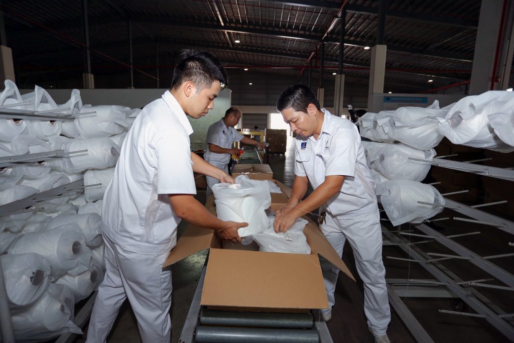 Ông Đào Văn Ngọc – Tổng Giám đốc VNPOLY cho biết: “Công ty đang cung cấp nguyên liệu cho một số khách hàng sản xuất khẩu trang y tế và luôn sẵn sàng đáp ứng ngay tất cả các đơn hàng trong nước dùng sợi DTY để phục vụ việc sản xuất khẩu trang. Đồng thời cũng áp dụng giá bán và chính sách chăm sóc khách hàng tốt nhất.”